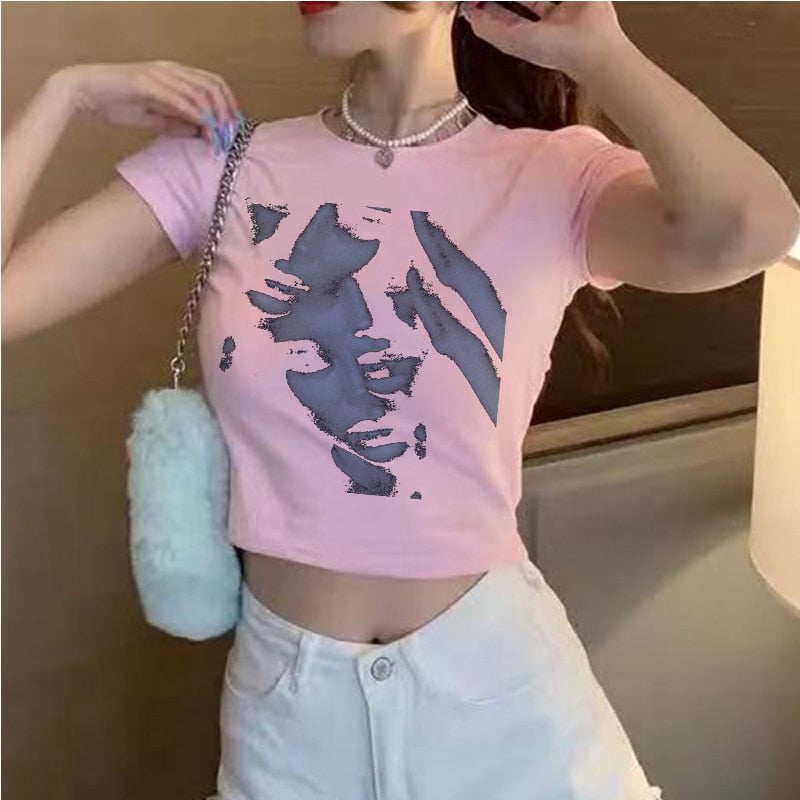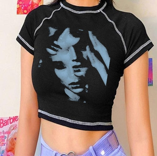 "Fading Away" Women Gothic Emo Vintage Crop Graphic T-Shirt