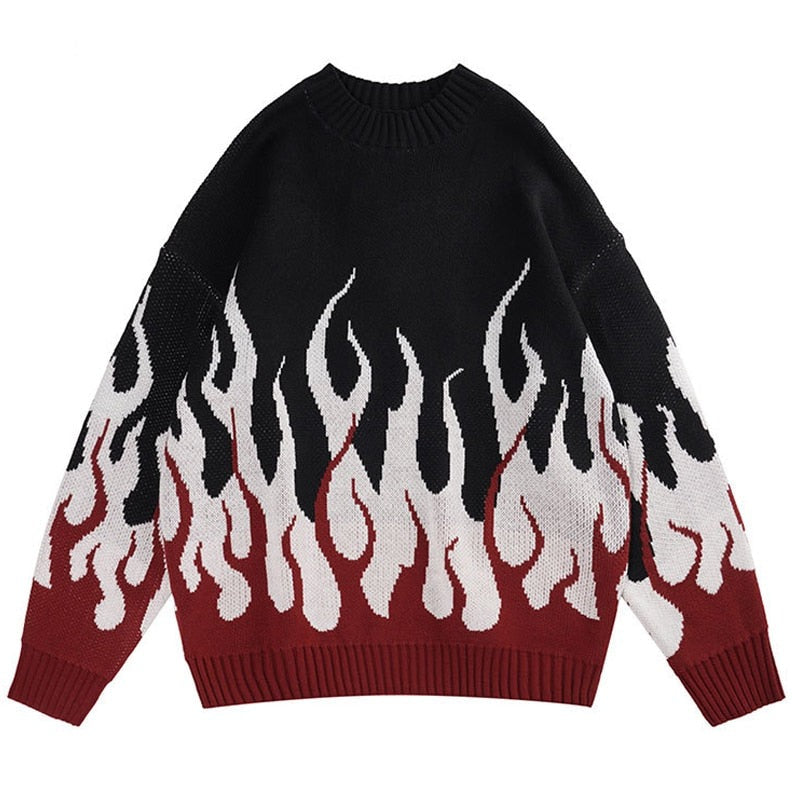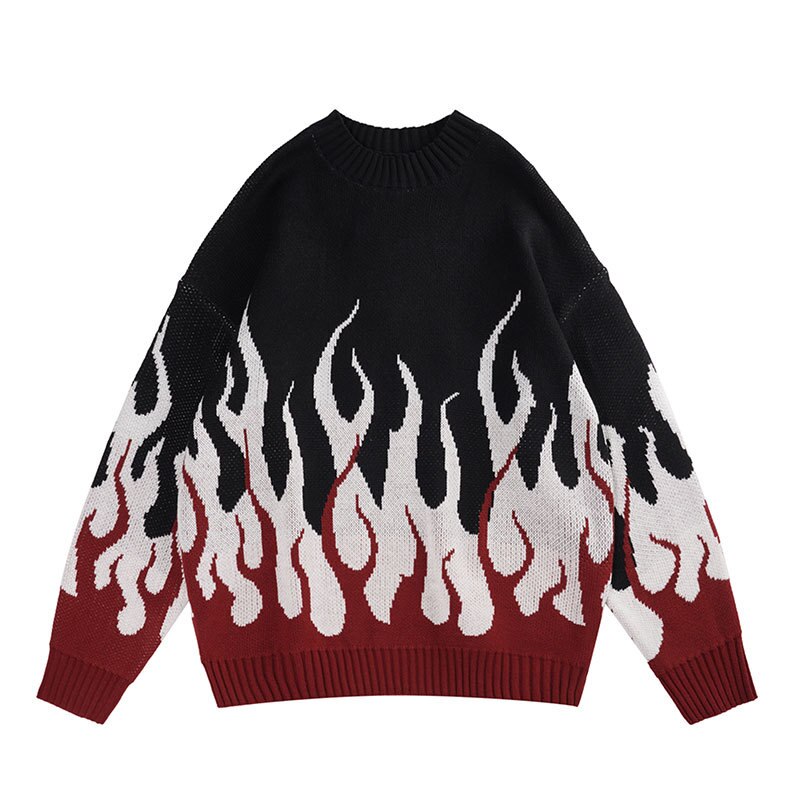 "White Fire" Unisex Men Women Streetwear Graphic Pullover Sweater
