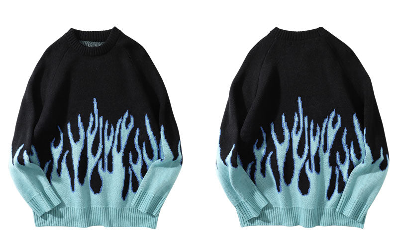 "Blue Flame" Unisex Men Women Streetwear Graphic Sweater