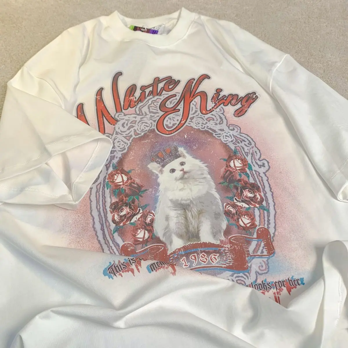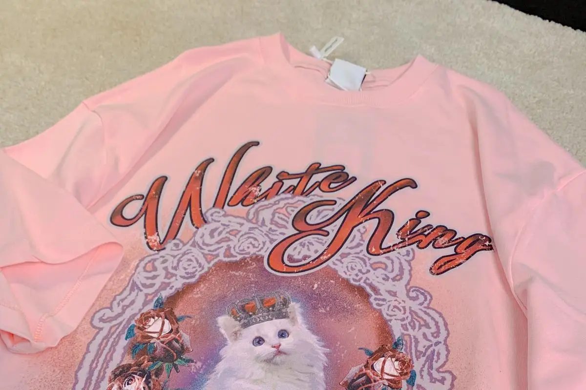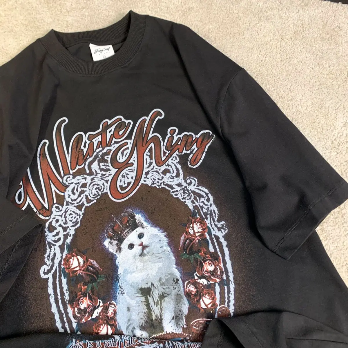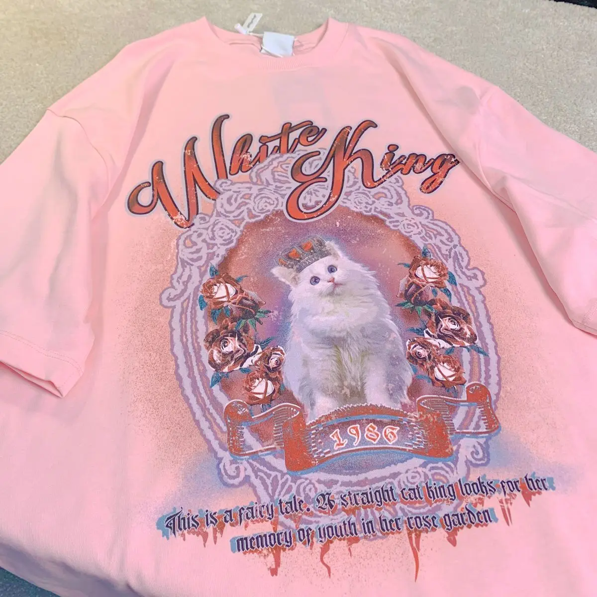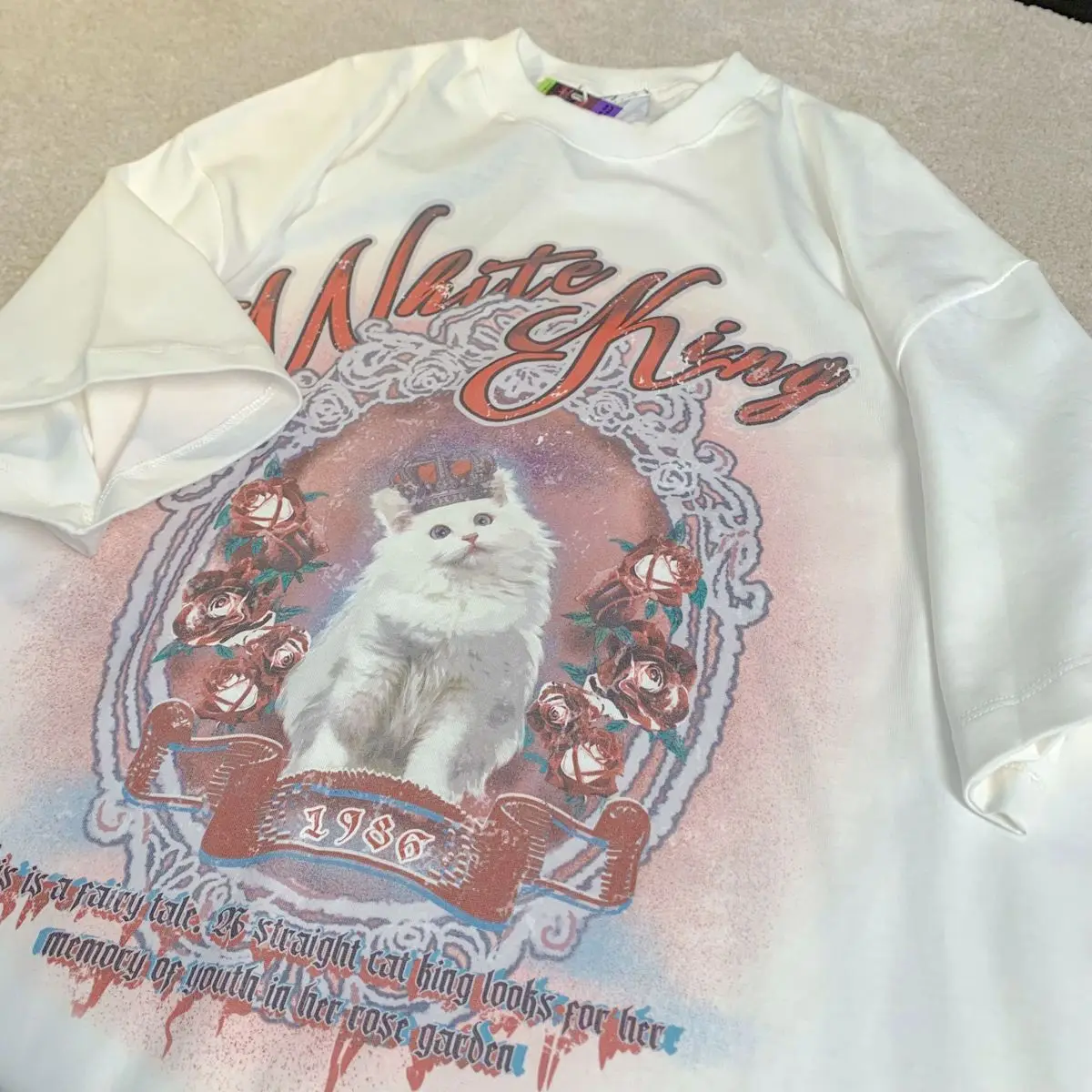 Vintage White Cat Y2K Painting T Shirts Fashion Streetwear Summer Tops Short Sleeve Sweet Kawaii Tees Cotton Material Harajuku
