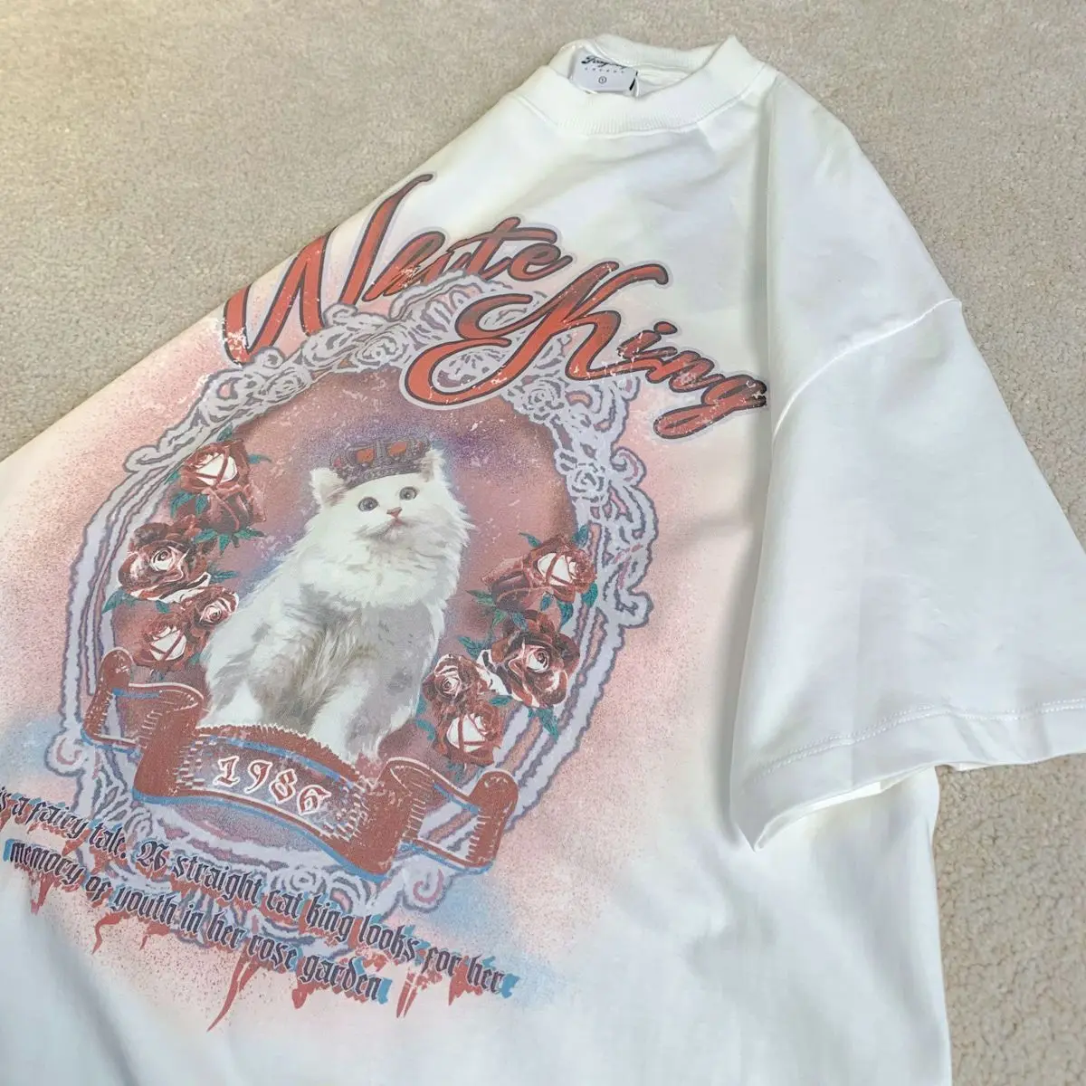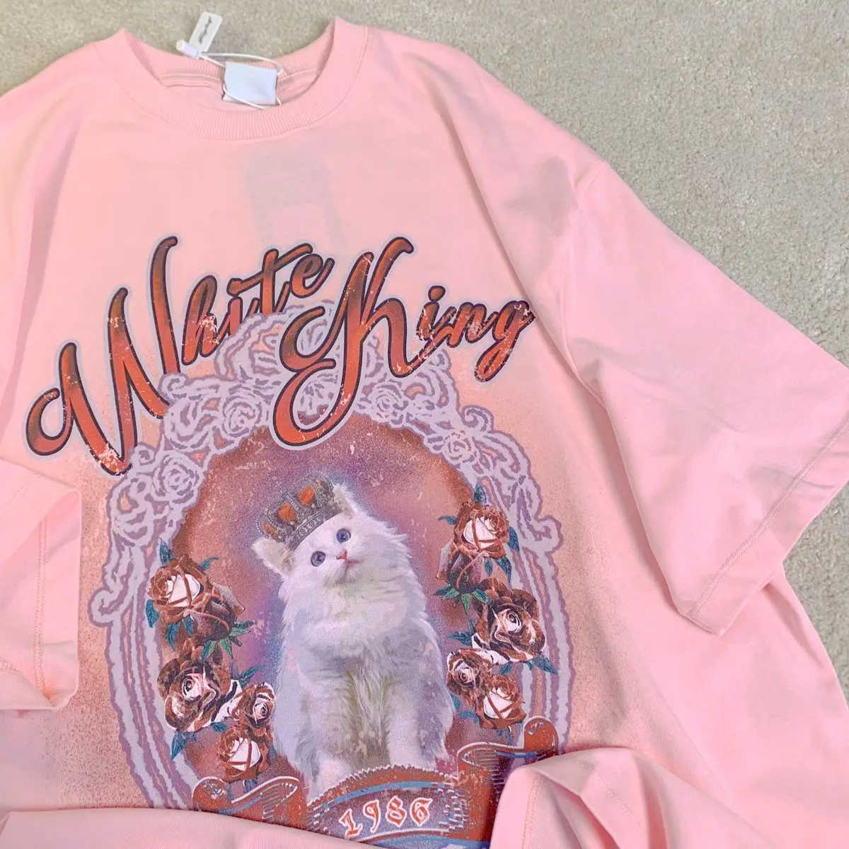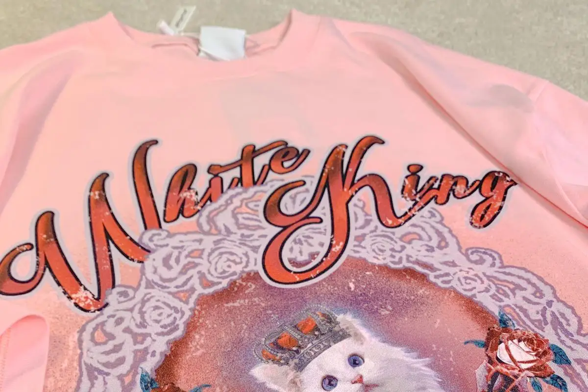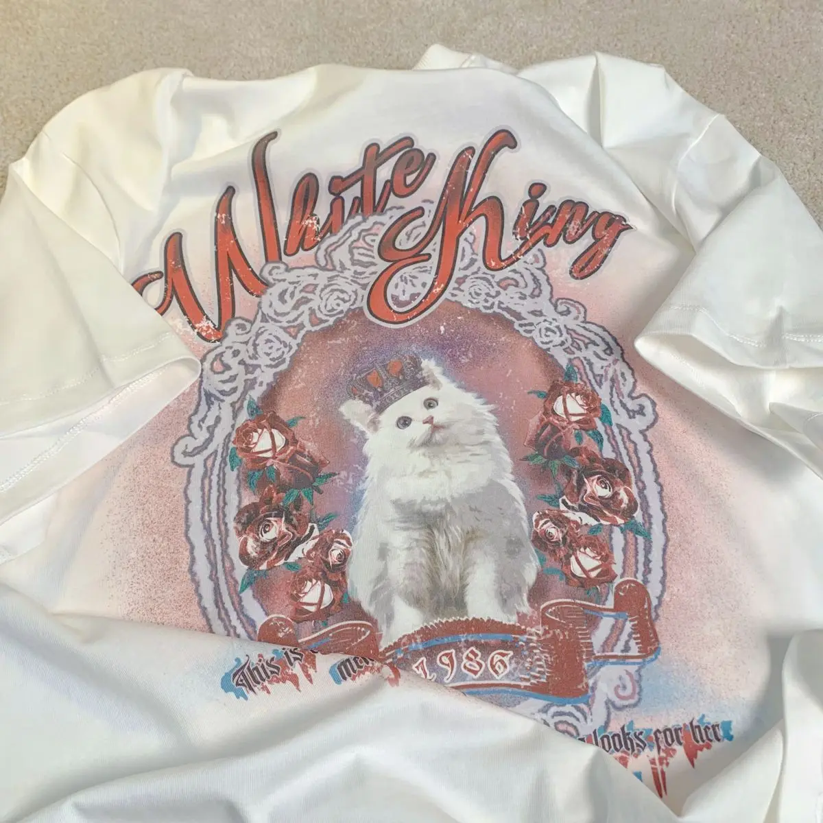 Vintage White Cat Y2K Painting T Shirts Fashion Streetwear Summer Tops Short Sleeve Sweet Kawaii Tees Cotton Material Harajuku