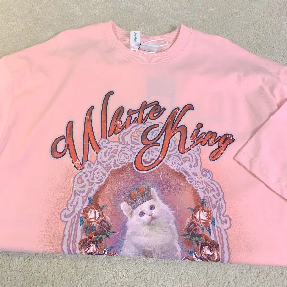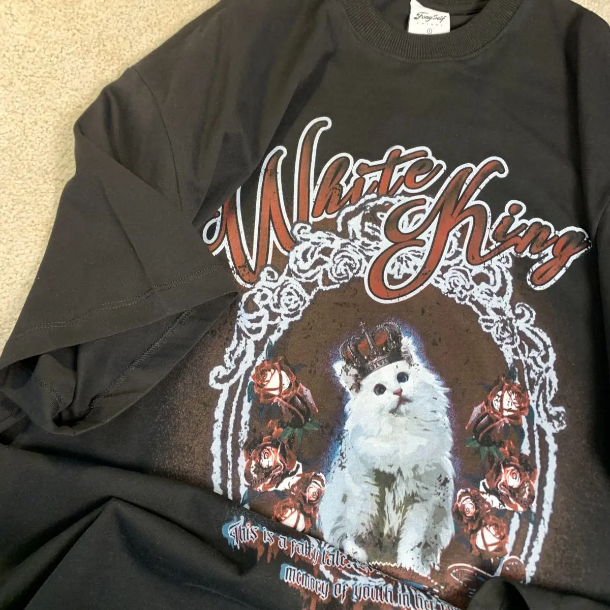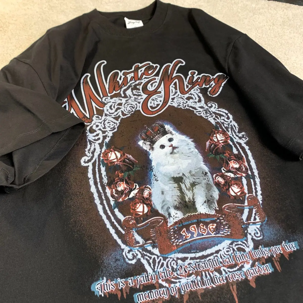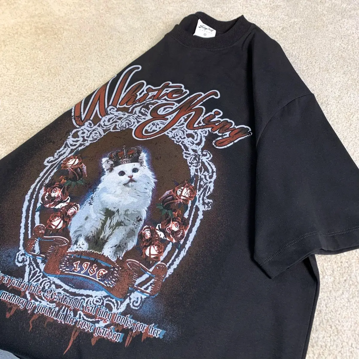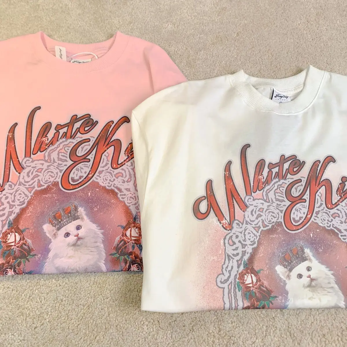 Vintage White Cat Y2K Painting T Shirts Fashion Streetwear Summer Tops Short Sleeve Sweet Kawaii Tees Cotton Material Harajuku
