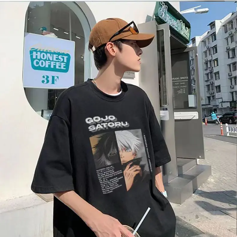 100%Cotton Material Y2K Top Japanese Anime Boy Graphic T Shirts Harajuku Teenage Hip Hop Streetwear Casual O-neck Summer Clothes