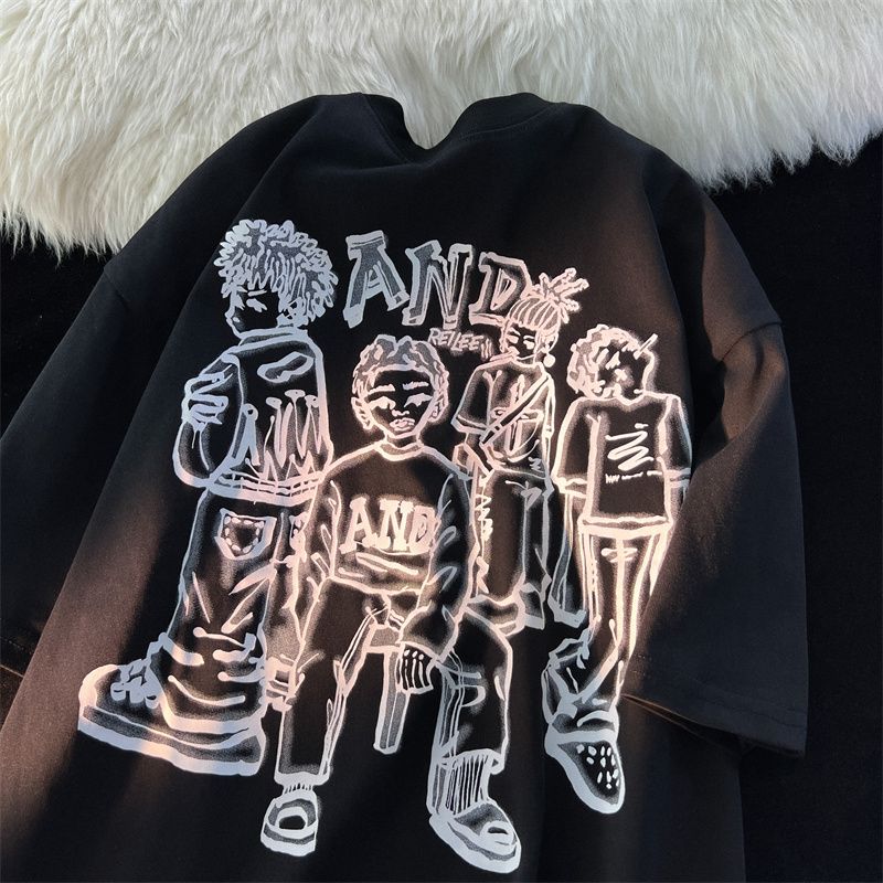 American Vintage Street Character Anime T Shirts Hip Hop Boys Hand-Painted Grunge Y2K Tops Oversized Couples Harajuku Kawaii Tee