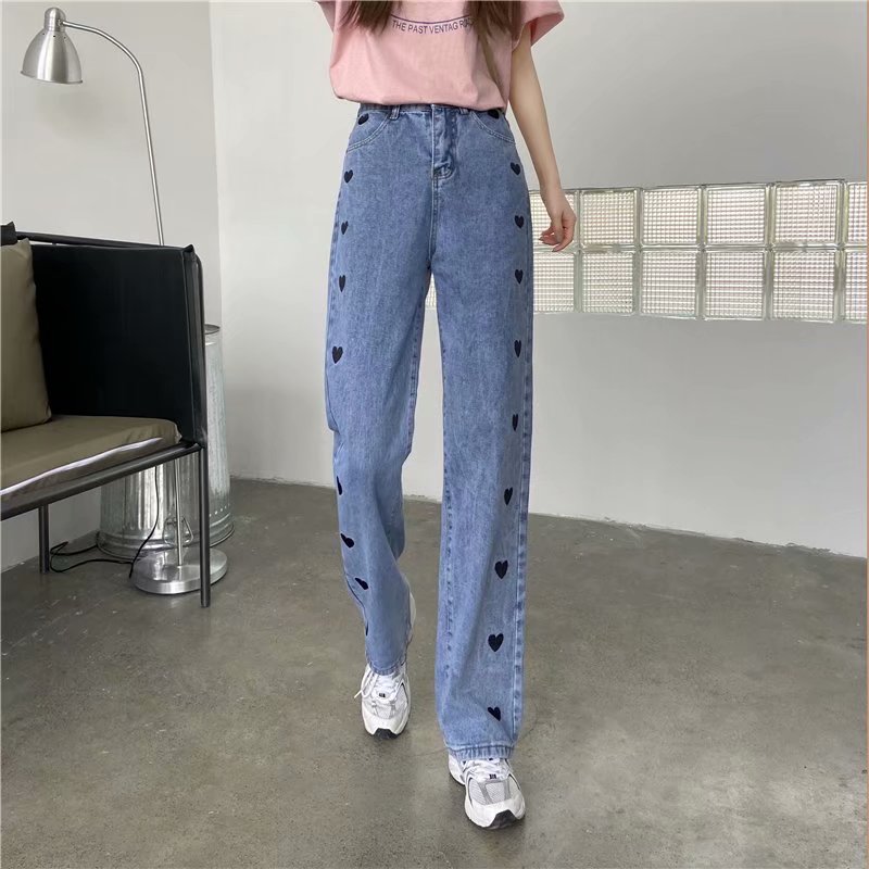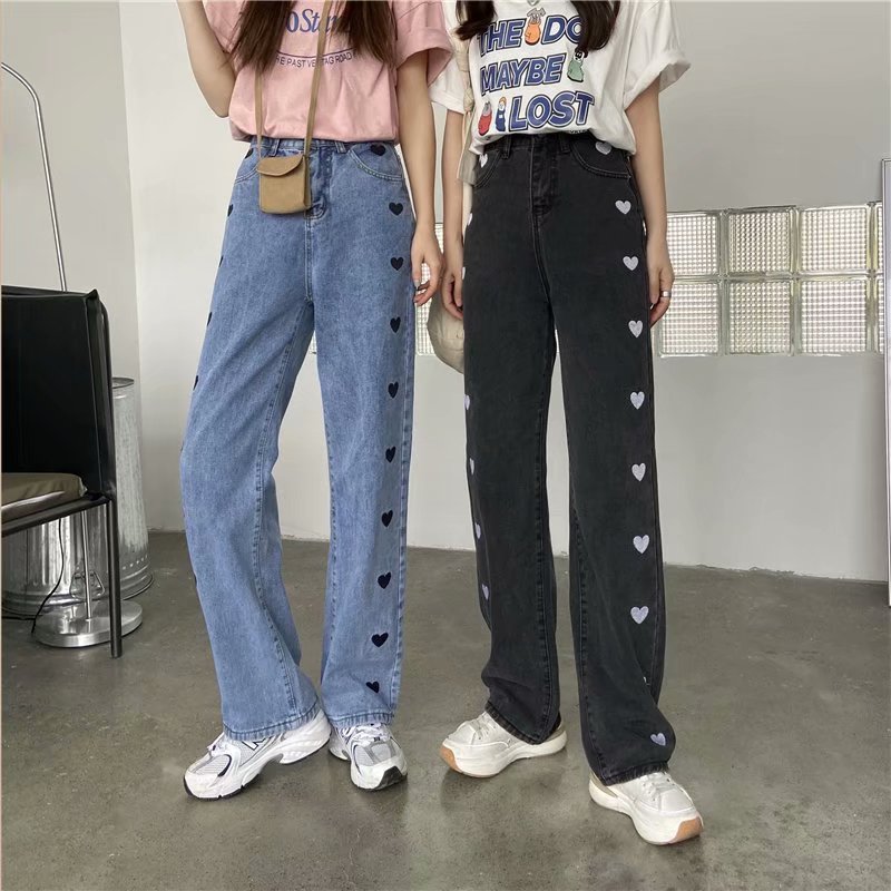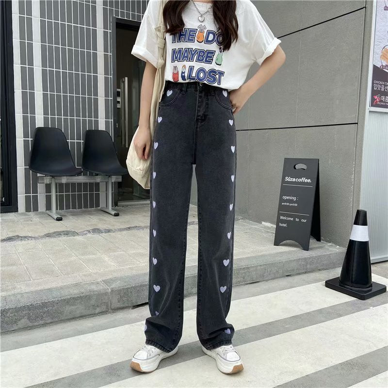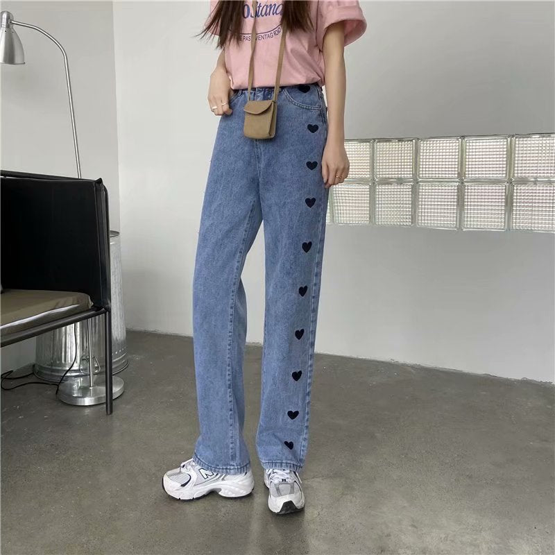 "Black Hearted" Unisex Men Women Streetwear Denim Jeans