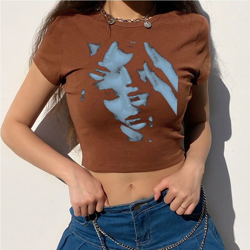 "Fading Away" Women Gothic Emo Vintage Crop Graphic T-Shirt
