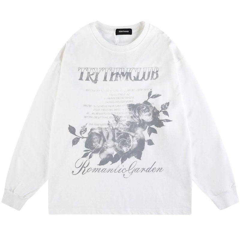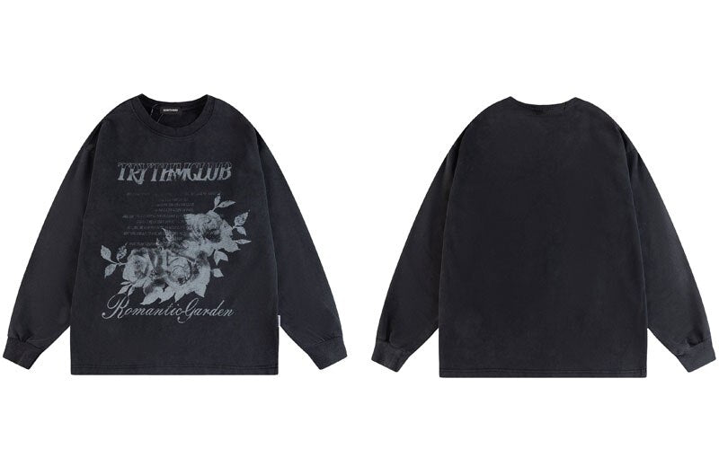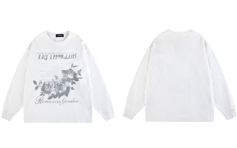 "Grey Flowers" Unisex Men Women Streetwear Graphic Sweatshirt