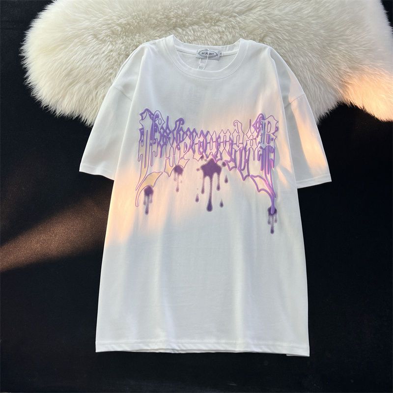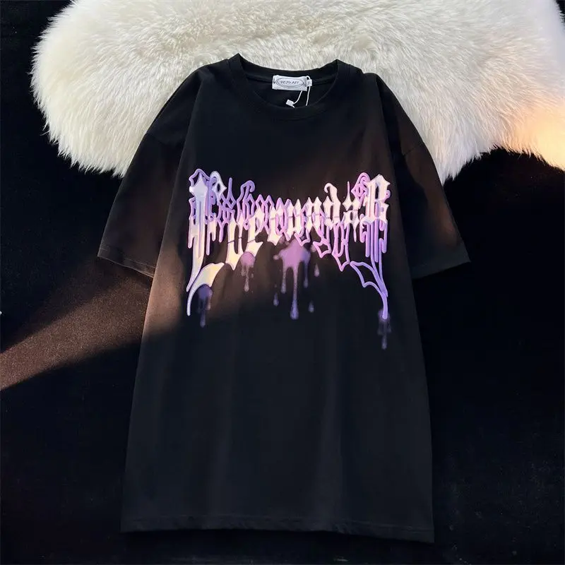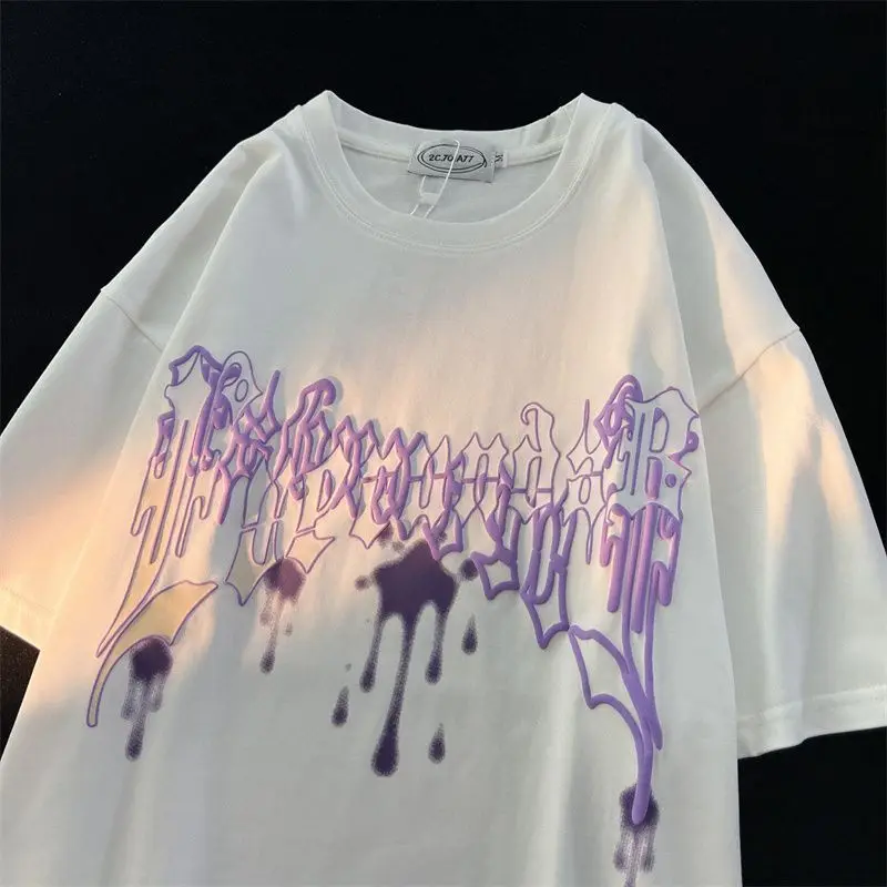 Purple Splash-ink Hip Hop Letters Graphic T Shirts Streetwear Oversized Short Sleeve Tops Summer Cotton Harajuku Couples Casual