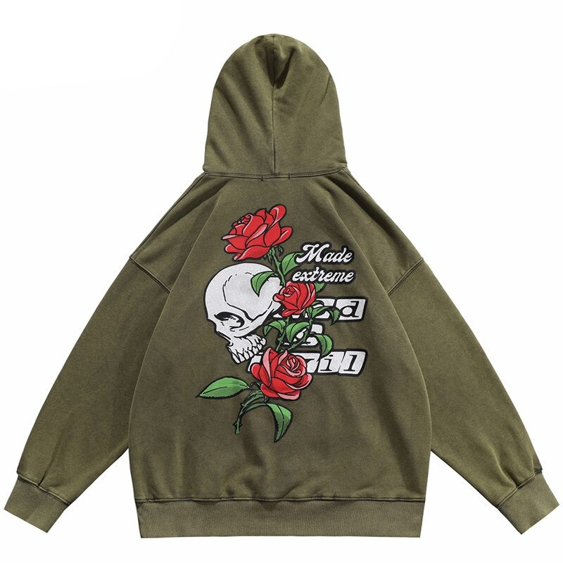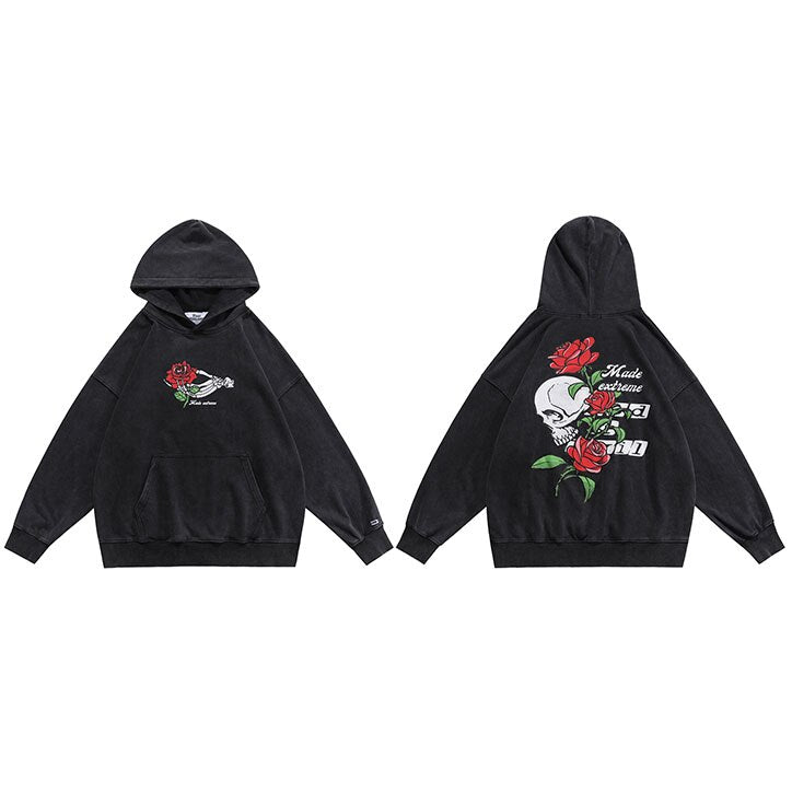 "Skull Rose" Unisex Men Women Streetwear Graphic Hoodie