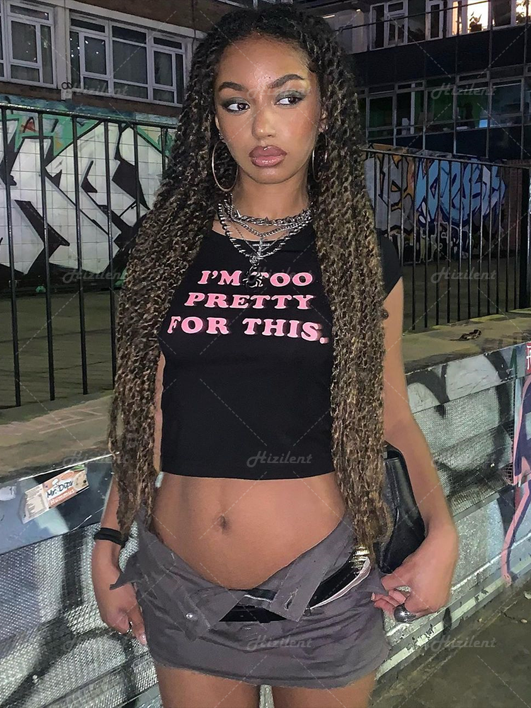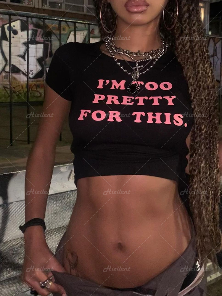 "Too Pretty" Women Letter Print Gothic Summer Crop Top